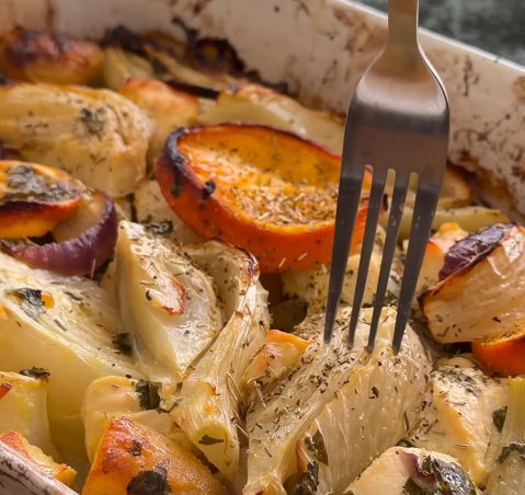 C’est encore plus gouteux et tendre de cuire le plat dans le vitaliseur de Marion Kaplan, mais si vous aimez que les légumes soient un peu grillés et confits par l’huile d’olive, vous pouvez faire un passage ensuite au four pour réchauffer le tout.